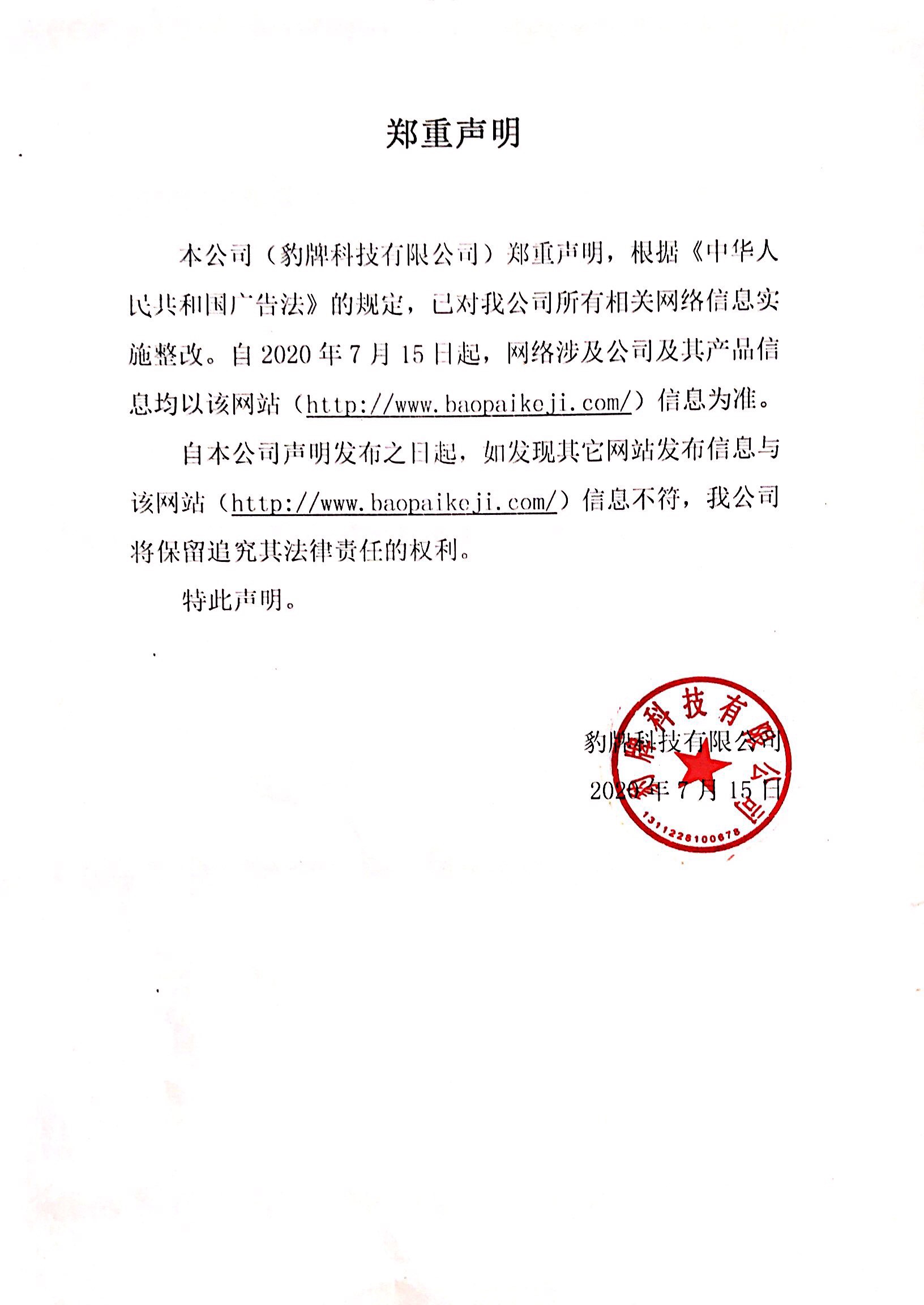 豹牌科技有限公司對相關(guān)網(wǎng)絡(luò)信息實施整改的鄭重聲明